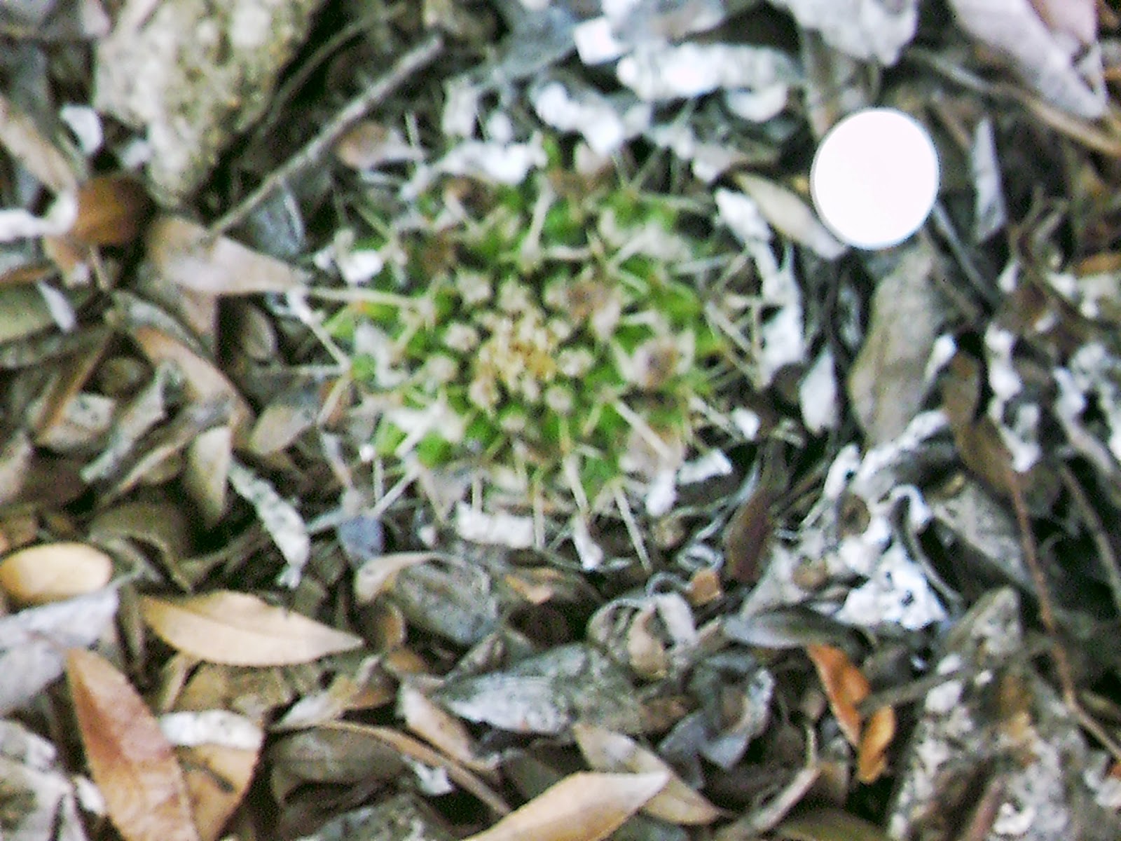 Obviously this one is a different variety, with its shorter spines and lighter green color. It would be eclipsed by a quarter. I'm eager to see what color its blooms will be, but I'm not holding my breath.