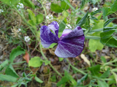I tried a little research on sweet pea viruses before starting to write this morning's posting, but found nothing like this. Moreover, the fancy seeds being advertised as producing variegated blossoms do not show this kind of bold pattern.