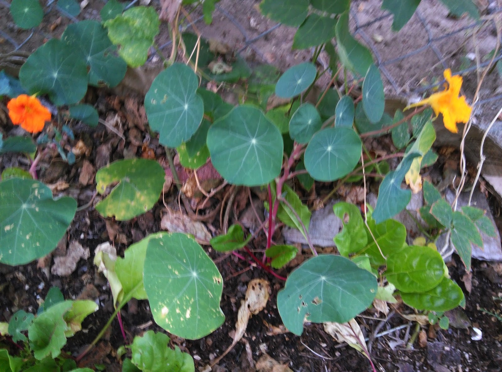 Though I often choose a politically correct option when facing a moral dilemma, I feel no guilt about harboring nasturtiums. I have repented my old way of letting them run rampant, but I have have never believed that, in the context of my urban, self-contained garden, they would "fuel wildfires, degrade grazing land, contribute to soil erosion, clog streams and rivers, and increase the risk of flooding." Even so, I keep an eye on them. A good way to see a flower or two.